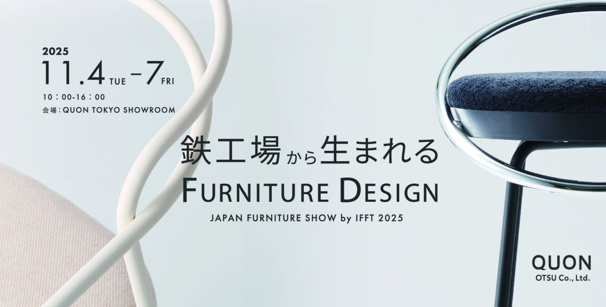 イベント期間中QUON TOKYO SHOWROOMでは、QUONの誇るスチール製の家具を中心に、鉄という素材が持つ機能美や質感、可能性を伝える展示会「鉄工場から生まれる FURNITURE DESIGN展」を開催します。